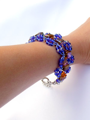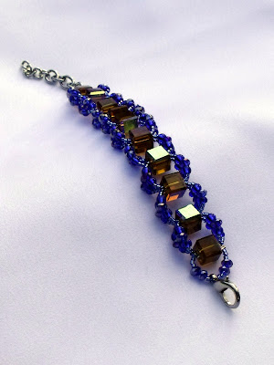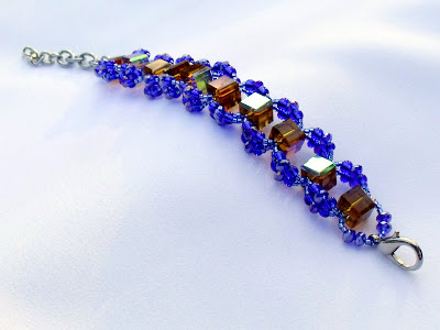 Anyhoo.. Here is the finished Gator Blocks Woven Bracelet. Great orange blocks with two layers of Gator blue crystals and glass beads woven around them. Lobster clasp on this bracelet makes it one size fits all - 5" all the way up to 8". (Email me if you need it smaller/larger - Caras.Creations@yahoo.com) You can find pics of this and more in the $20 Bin on my blog home page on the right.