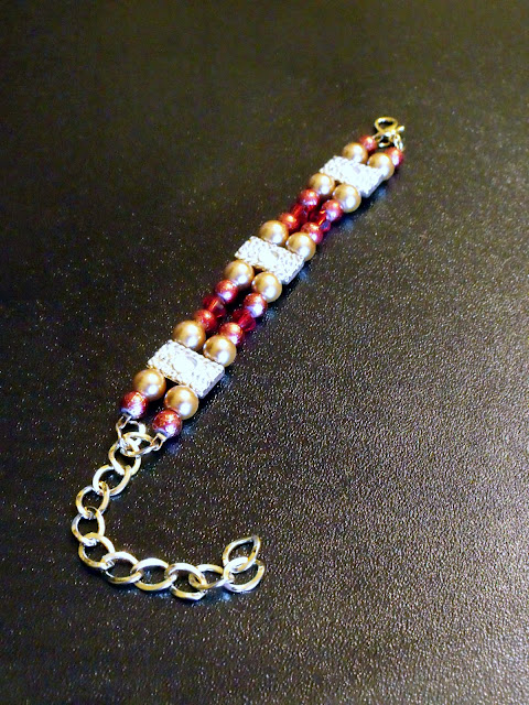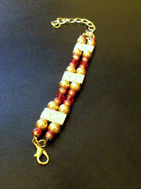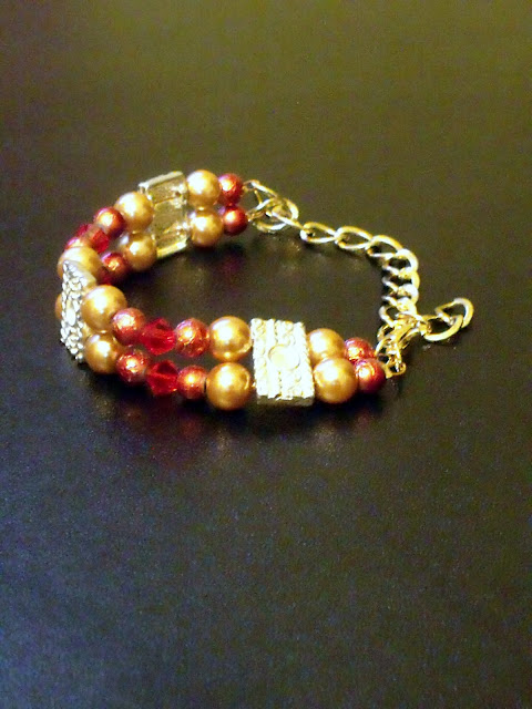 For instance, one of my customer's - (I won't say her name just in case the person receiving an item as a gift looks at my website, but I'll call her Ms. S.) - saw me wearing and liked this red and gold bracelet design, but needed something in purple. (The red and gold bracelet is still available btw)