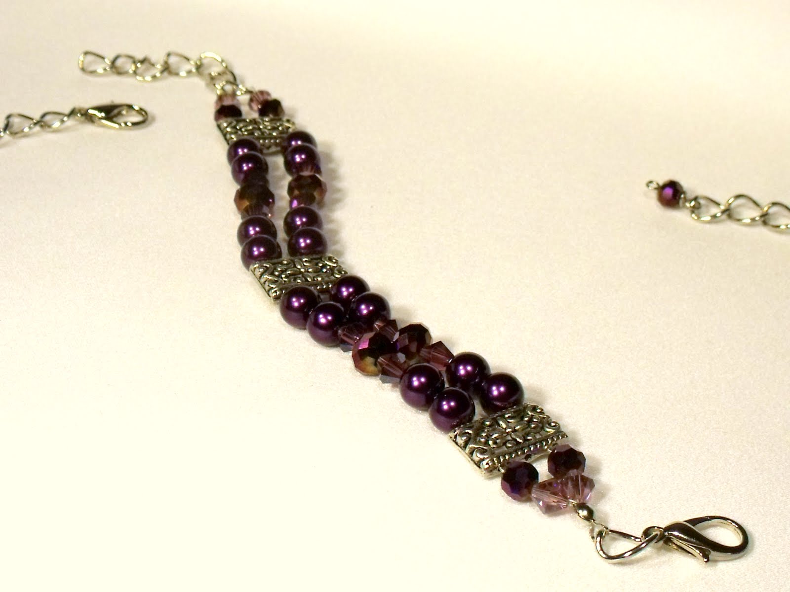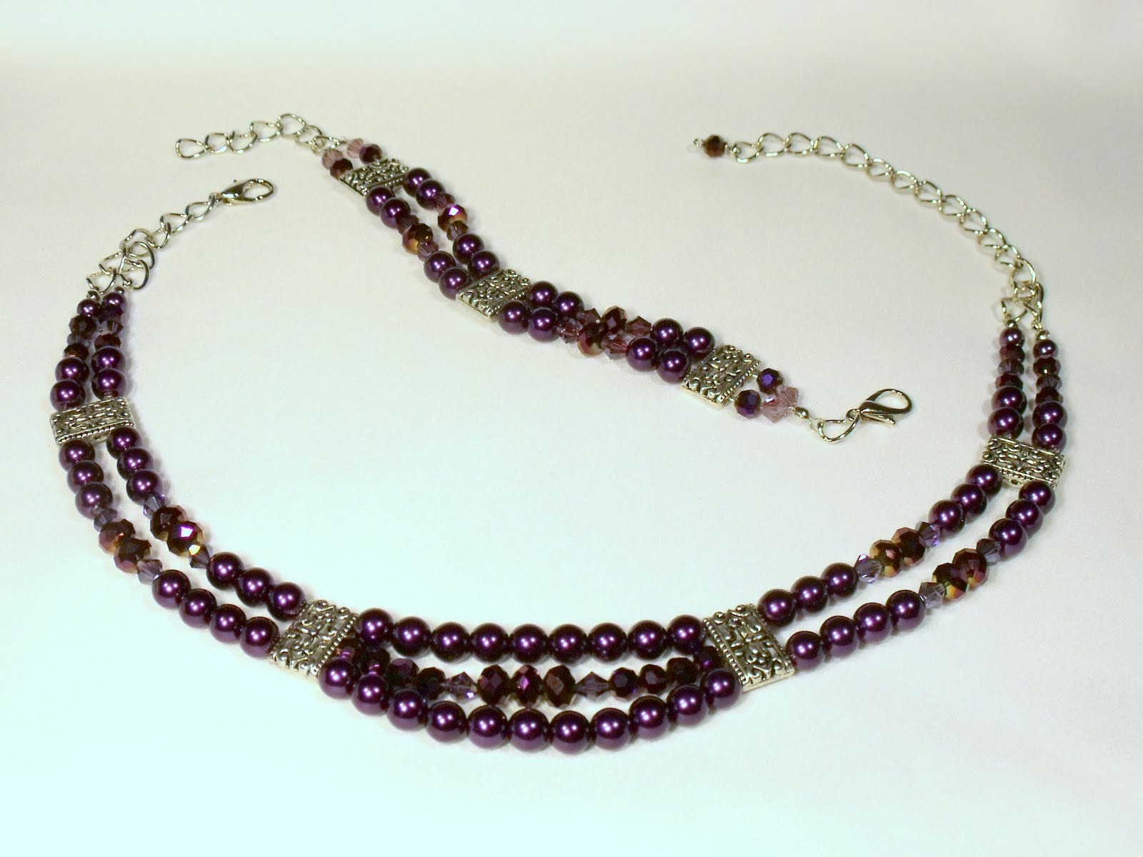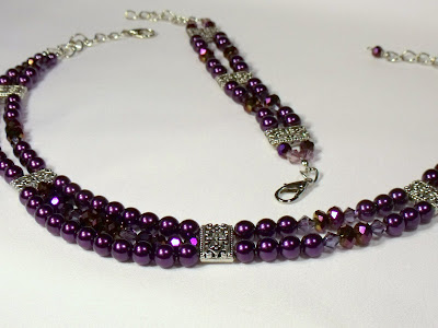 I kept the same basic double pearl layer design but changed up some of the other beads, the metal spacers, and chain to give it a slightly different look with these deep dark, deliciously purple glass pearls.