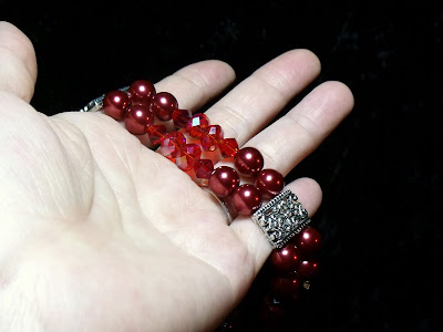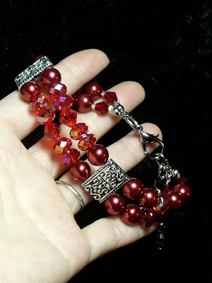Not to do them any disservice, I wanted to show you the gorgeous Red Glass Pearl Bracelets made for a co-worker and her friends. This young lady has a huge heart, and she decided to show it off by giving her lucky friends some awesome eye-candy to wear by gifting these wonderful bracelets. Each hand-crafted bracelet is similar in pattern, but is still very much different from the other. Crystal size and shape vary in placement for a little added variety, interest, and fun. Also to change it up, I used crystal spacer bars for maximum wow-factor on one bracelet. Hope you like the pics and videos. Email me at caras.creations@yahoo.com if you'd like to order one (or more). Please include your size if known, or do as one customer stated, she needed one for her daughter whose wrist size was medium-ish. I made hers a size 6". More updates to come soon! Spring is in the air and I'm currently working on some more springy-inspired bling.