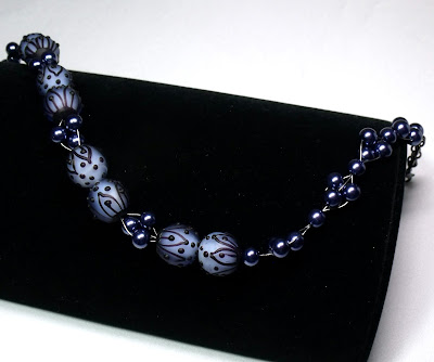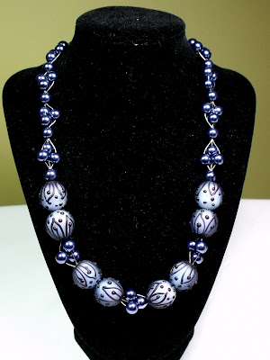 The Navy Blue Glass Globes & Woven Pearls necklace is beautiful. Love the colors and the style of the necklace. Judy