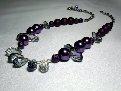 Next, I wanted to show you the deep purples and sparkly crystals of this upcoming necklace. It is a slightly different version of the Purple Pearls with Chinese Teardrop Crystals Necklace, as this one makes an elegant bold and dramatic look with the Chinese Teardrop Crystals all in the front.