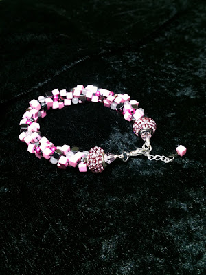 Next up, we have the lovely Pink Stone, Rose Quartz and Gun Metal Blocks Kumihimo Bracelet. Soft pink and gun metal colors come together as opposites in this feminine yet edgy kumihimo bracelet. Eight strands of light pink stone, rose quartz, and gun metal blocks are hand woven in a gradual spiral pattern in the japanese kumihimo style, with a few hints of bright pink and shiny silver for added bling and variety. Either for youself or as a gift, this bracelet will totally rock any pink, grey, black, and even white outfit.